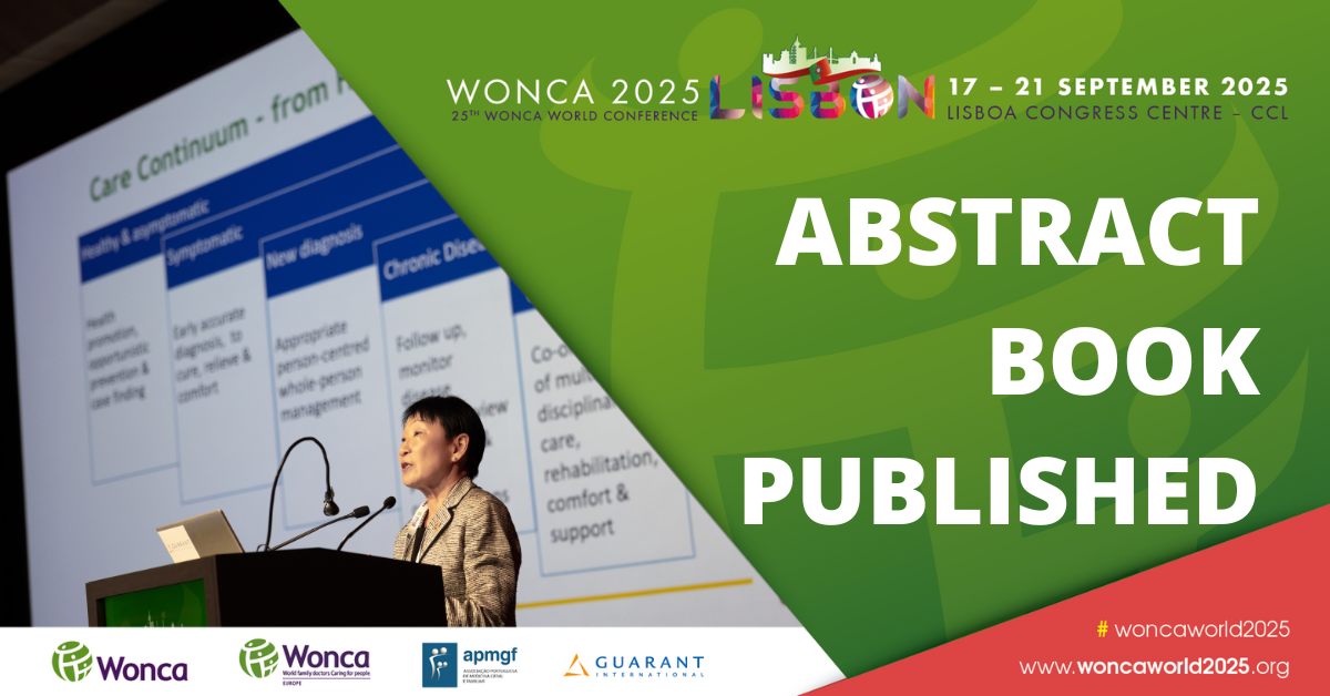 The Abstract Book from the 25th WONCA World Conference (Lisbon, September 2025) is now available online, published as a supplement of the Revista Portuguesa de Medicina Geral e Familiar (RPMGF).