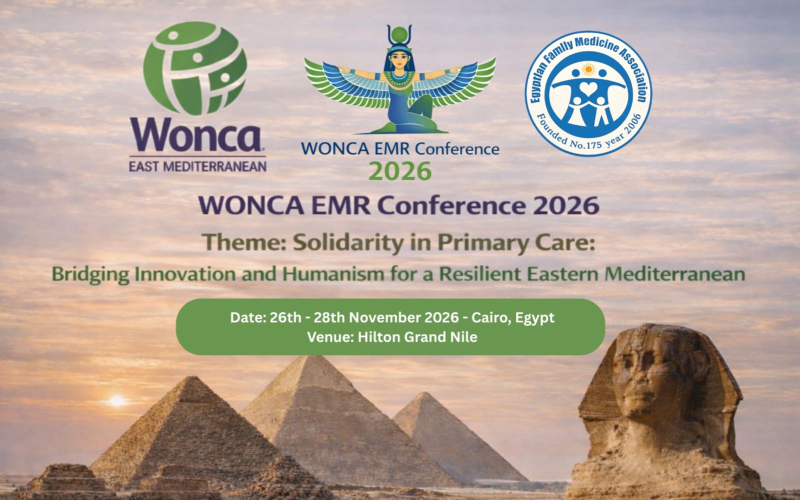 The WONCA Eastern Mediterranean Region (EMR) Conference 2026 has been rescheduled from 29-31 October to 26-28 November 2026. The conference will continue to be held at the Sofitel Cairo Downtown Nile Hotel, Cairo, Egypt.